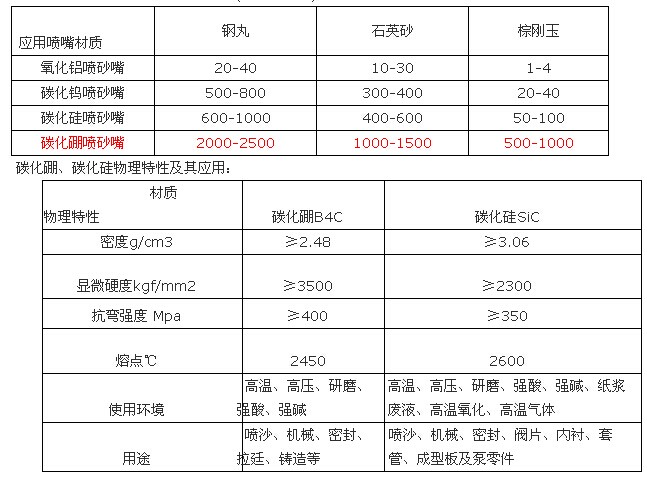我公司生产的碳化硼制品特点:它具有同碳化硼性能,极硬又耐磨,与酸碱不起反应,耐高低温高压,碳化硼喷砂枪确保密度≥2.48g/cm3。显微硬度≥3500kgf/mm2,抗弯强度≥400Mpa,熔点为2450℃。