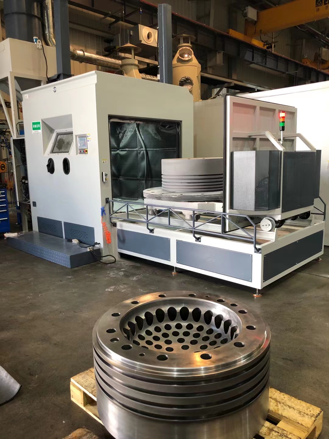 - 产品名称:手自动一体高压转台船舶重工件喷砂设备